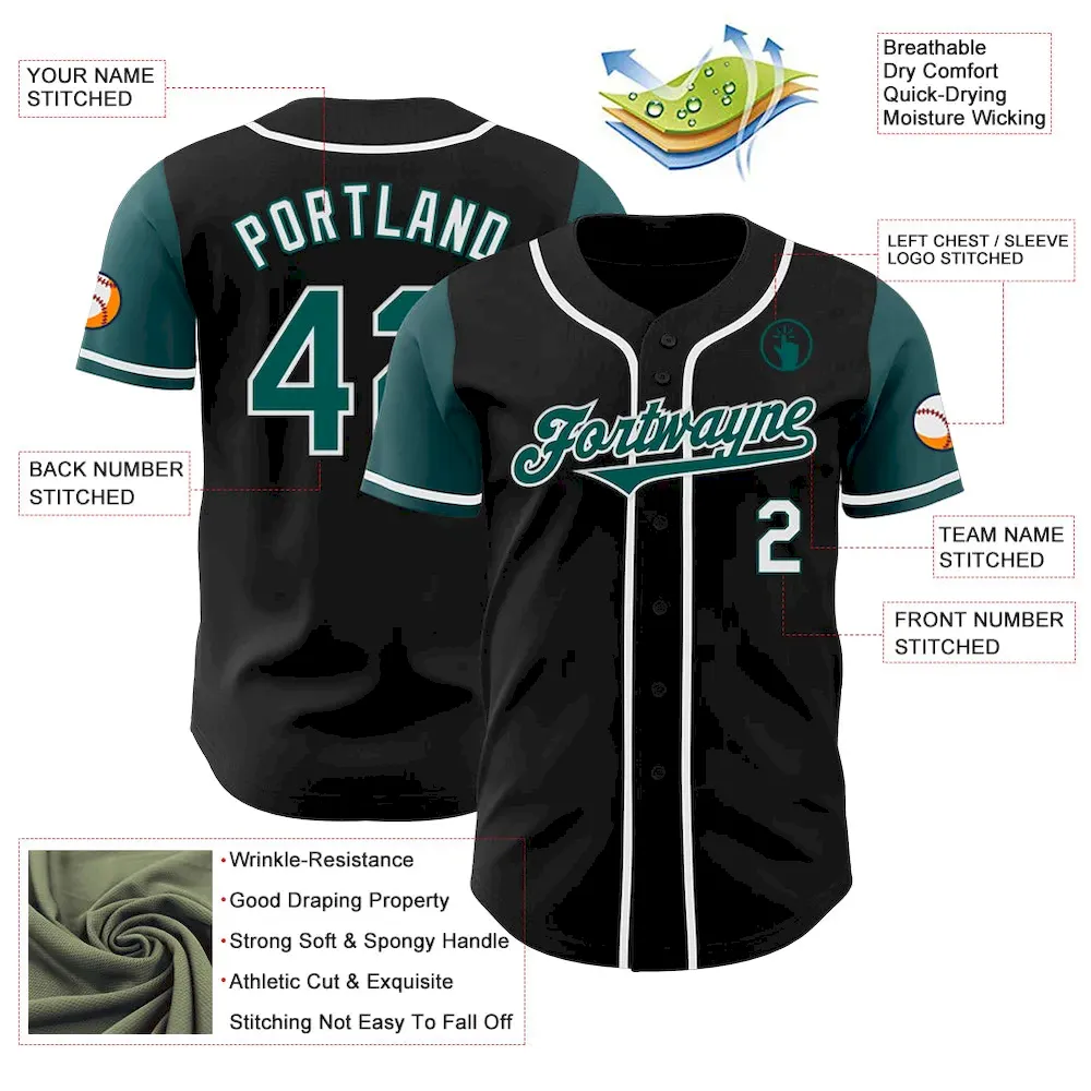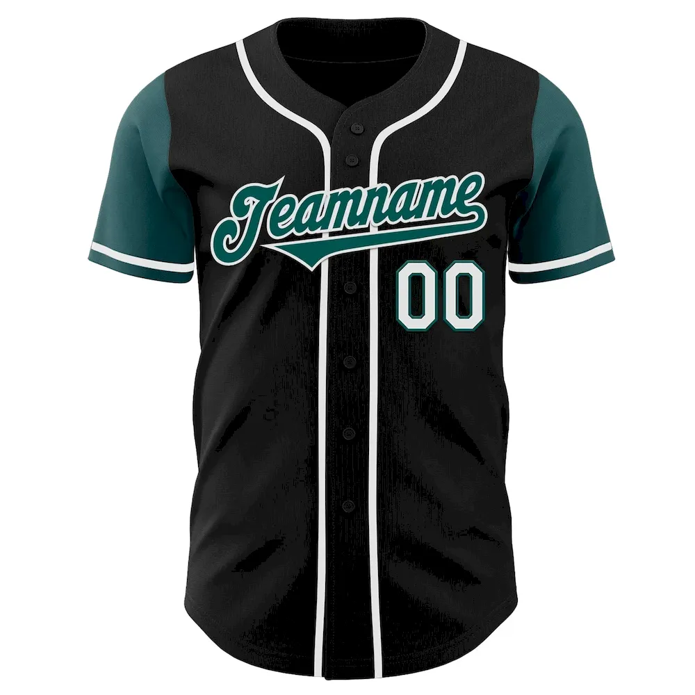 Custom Black Midnight Green-White Authentic Two Tone Baseball Jersey