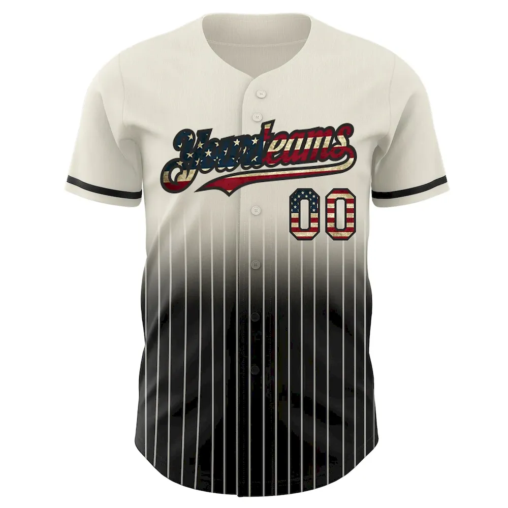 Custom Cream Pinstripe Vintage USA Flag-Black Authentic Fade Fashion Baseball Jersey