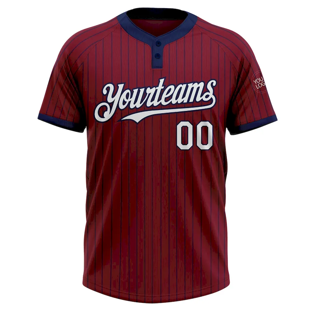 Custom Crimson Navy Pinstripe White Two-Button Unisex Softball Jersey