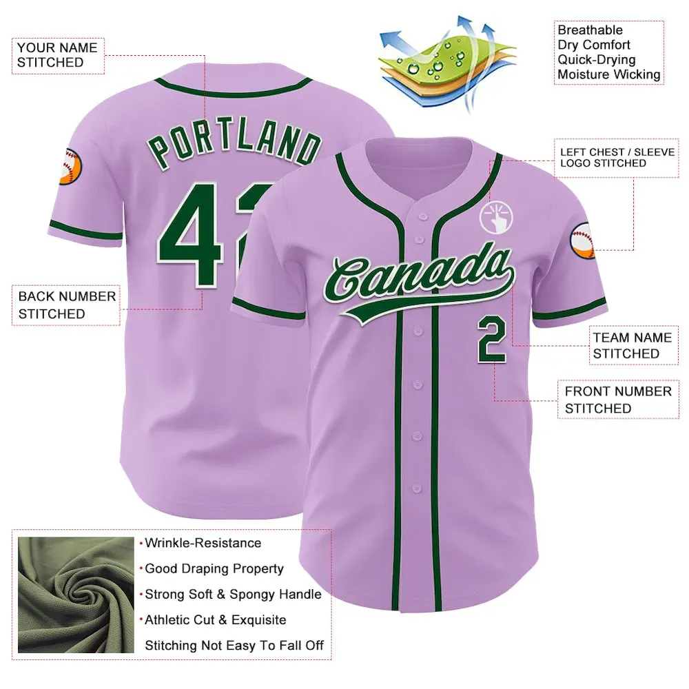 Custom Light Purple Green-White Authentic Baseball Jersey