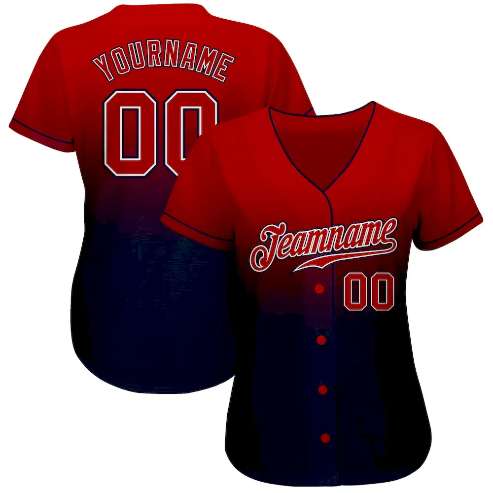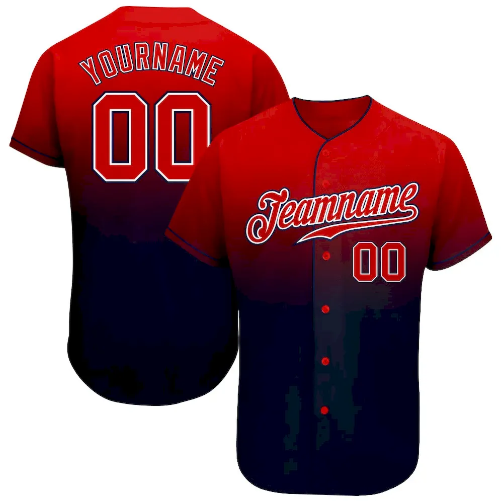 Custom Navy Red-White Authentic Fade Fashion Baseball Jersey