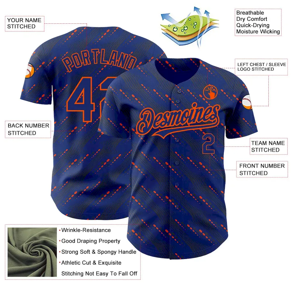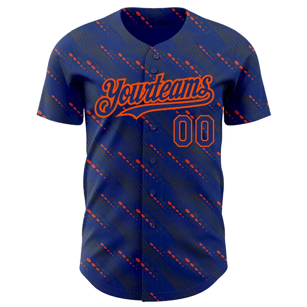 Custom Royal Orange 3D Pattern Design Slant Lines Authentic Baseball Jersey
