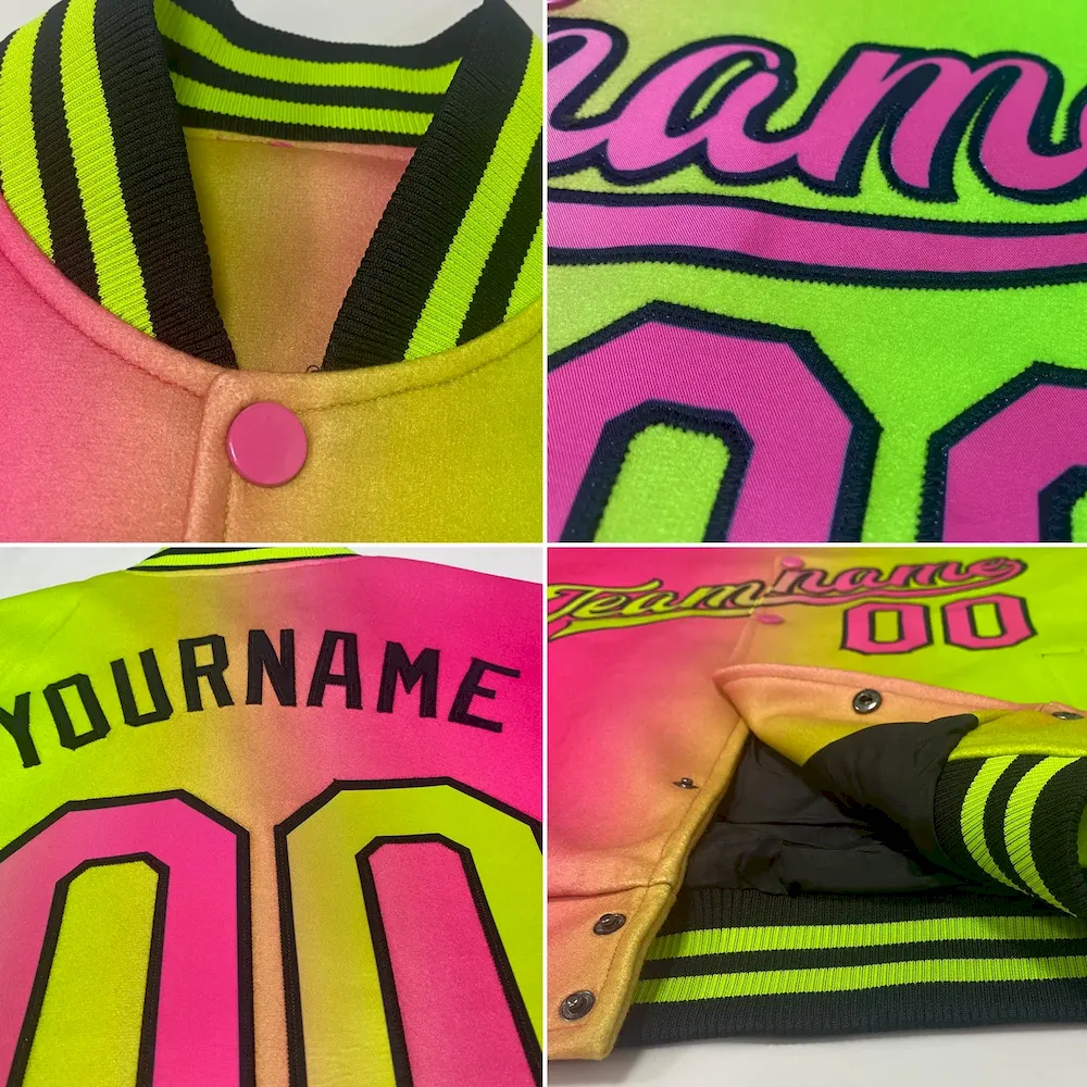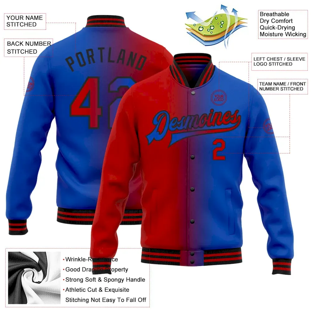 Custom Thunder Blue Red-Black Bomber Full-Snap Varsity Letterman Gradient Fashion Jacket