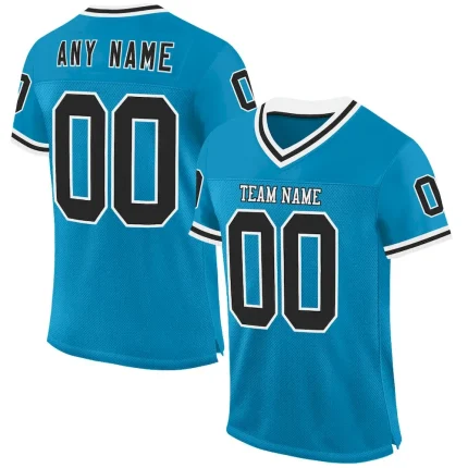 Custom Panther Blue Black-White Mesh Authentic Throwback Football Jersey