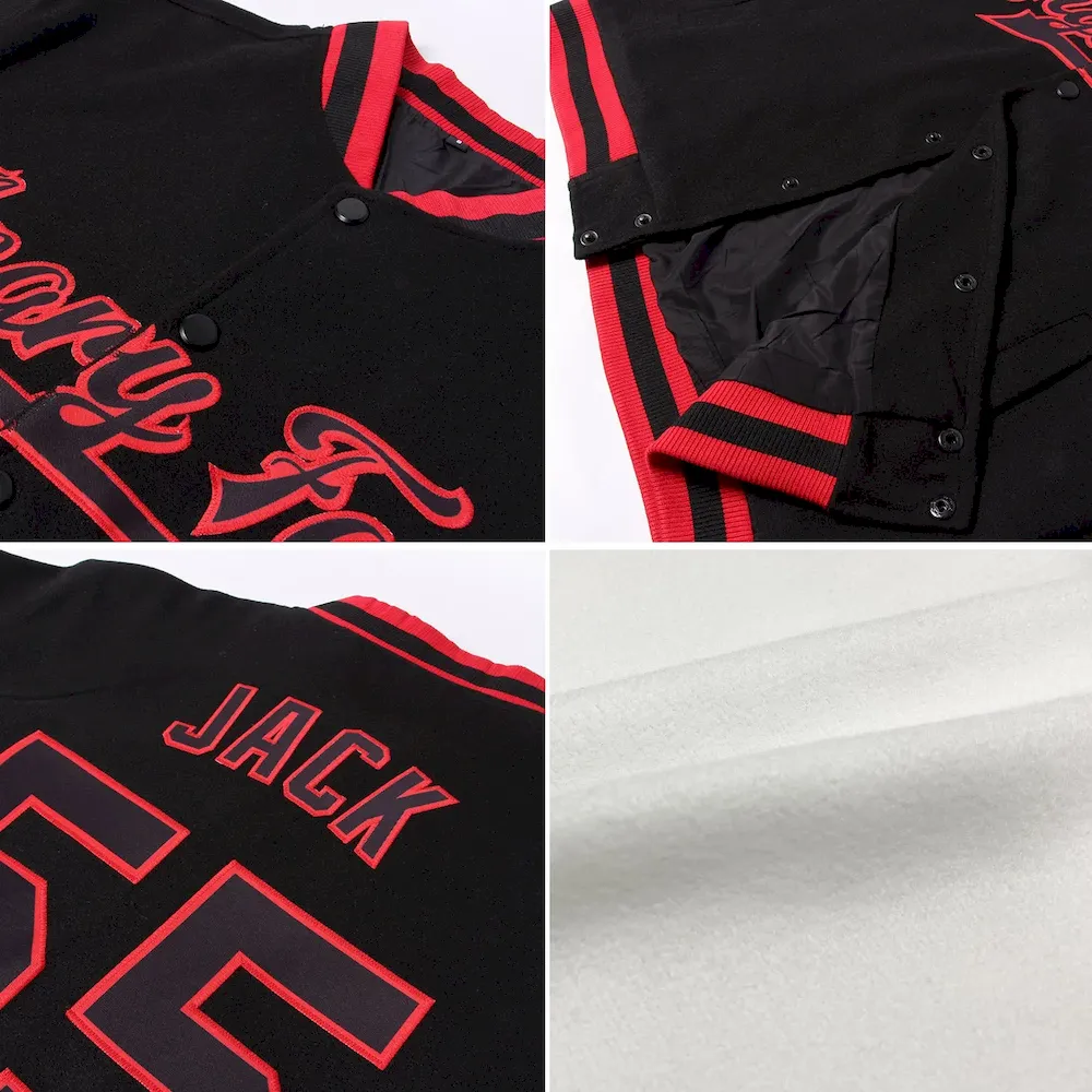 Custom White Red-Gold Bomber Full-Snap Varsity Letterman Jacket