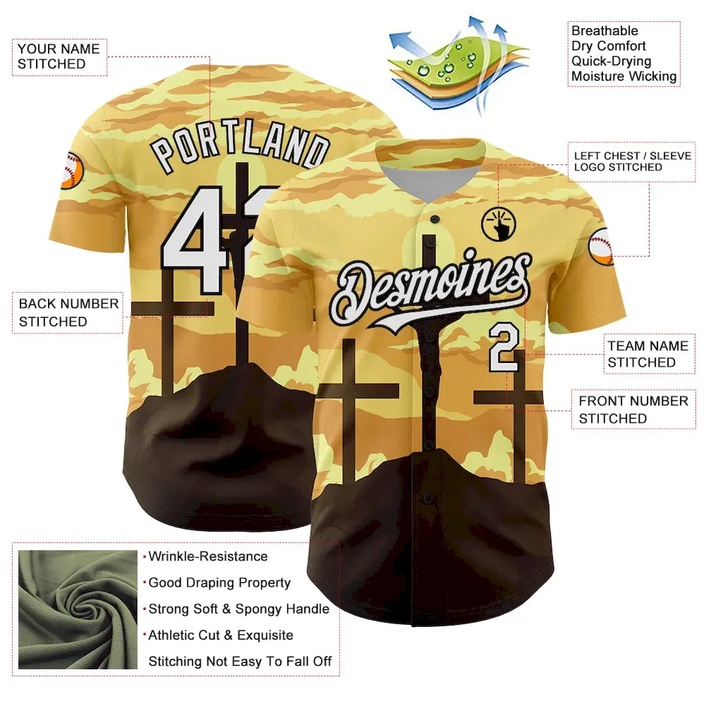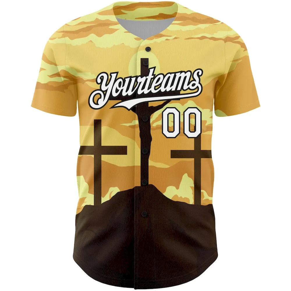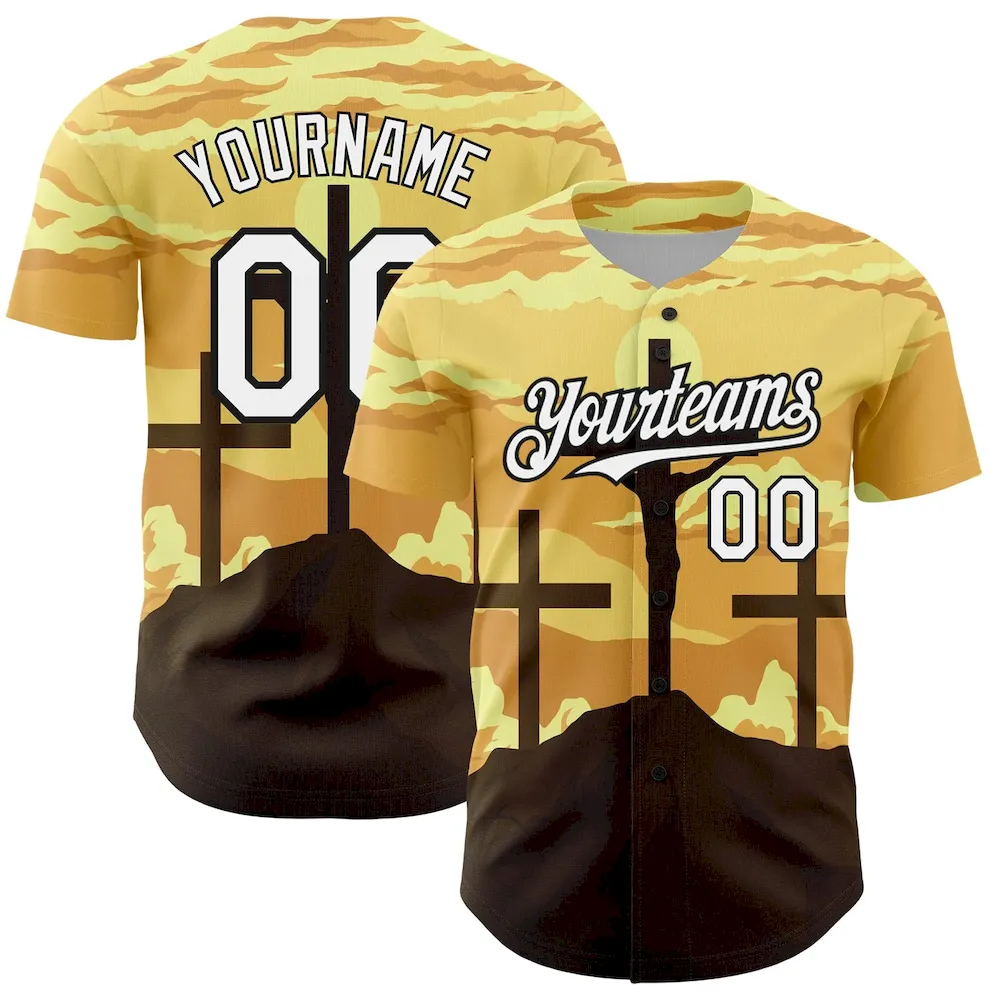 Custom Yellow White-Black 3D Pattern Design Religion Cross Jesus Christ Good Friday Authentic Baseball Jersey